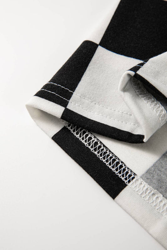 Checkered Print V Neck Top & Shorts Lounge Set | S-XL