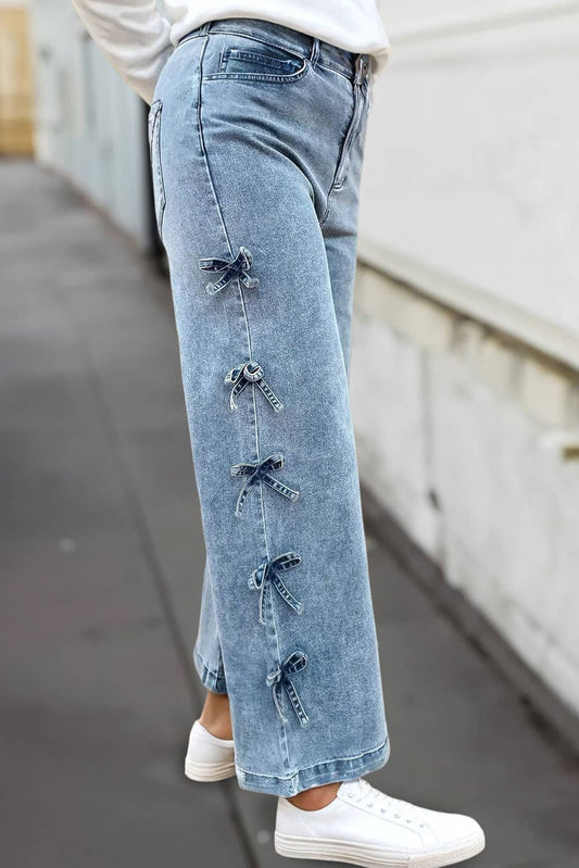 Bow Knot Side Detail Straight Leg Loose Jeans | 4-16